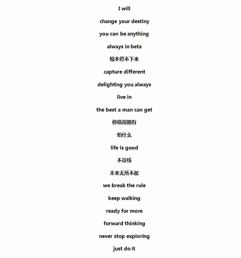 《你所有的热爱,全在这里》是个仅60秒的广告大片,背景音是一首“品牌诗”,诗歌的内容由20多个知名品牌的广告语串联,十分高燃,很多人对这个片子的评价是:创意简单而有爆发力。