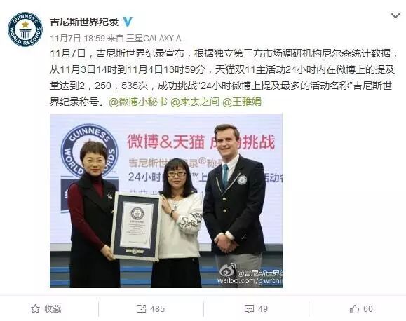 “双11”还没到,天猫就破了一项吉尼斯纪录
