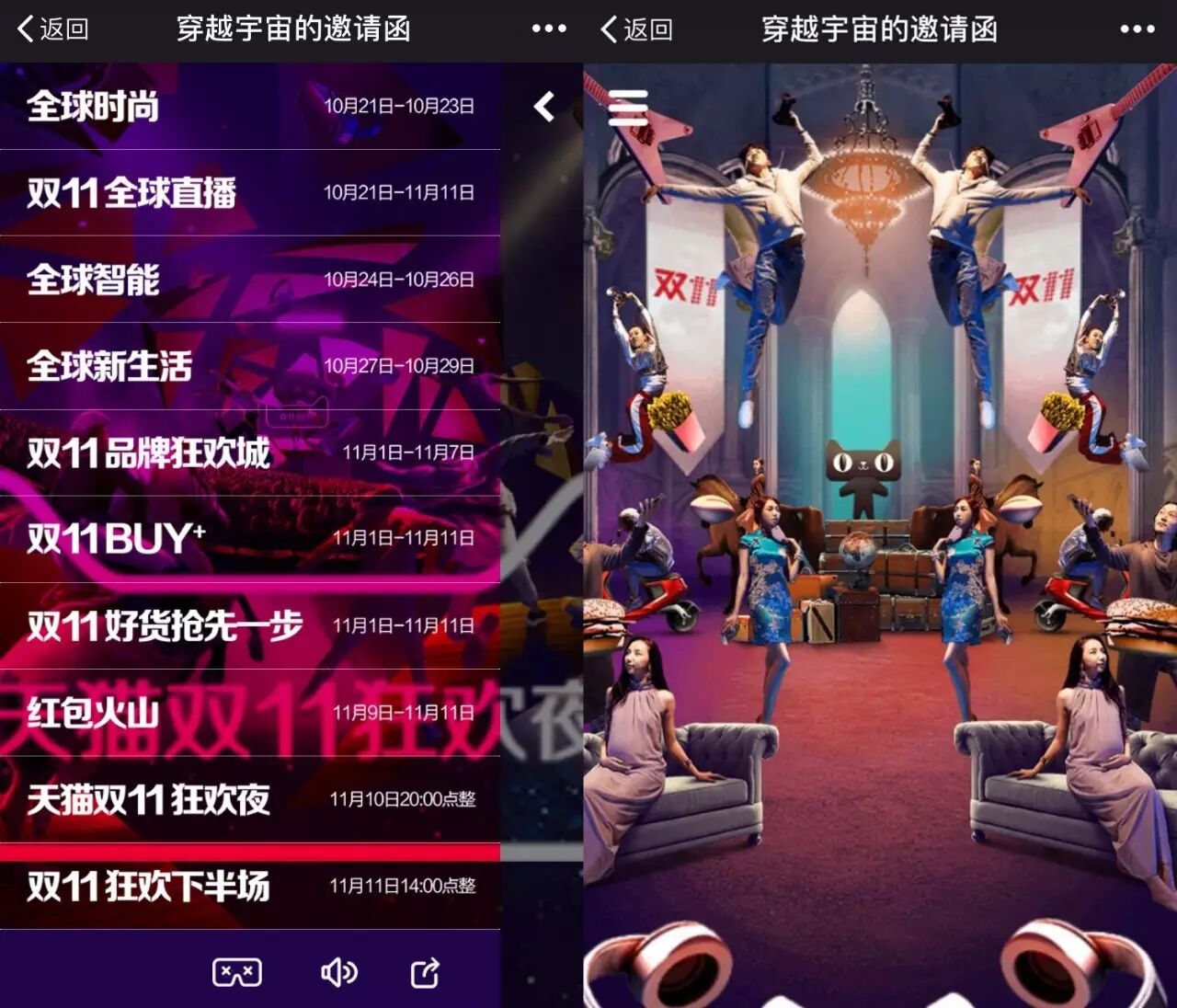 10月底,天猫“双11”的这个邀请函H5,在一片“厉害了,我的猫”的赞叹声中横扫朋友圈。这个H5的页面顺滑,色调很正,炫到晃眼,界面设计和创意都非常不错。
