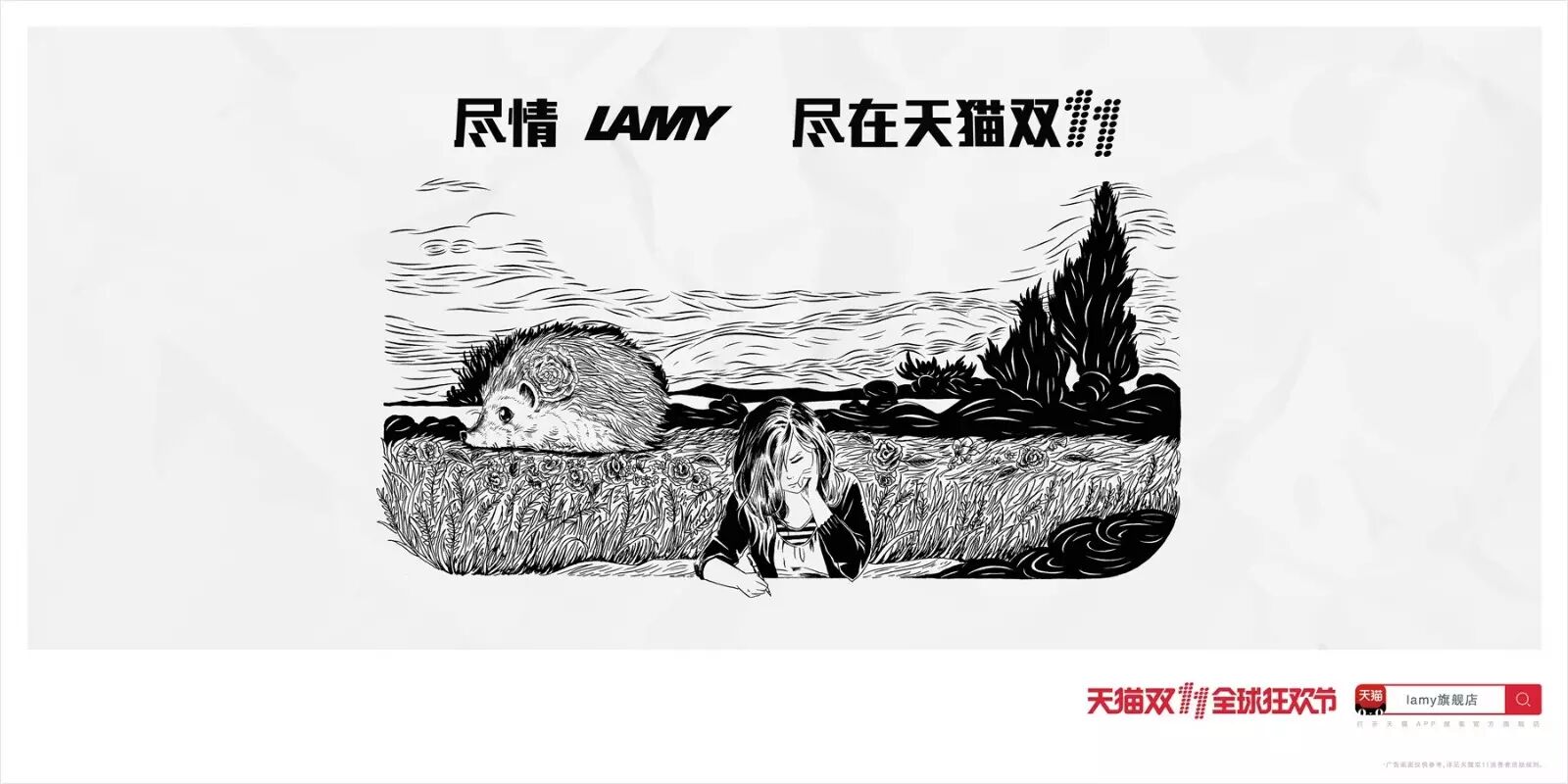 这一系列海报共有40多张,主打品牌合作,联合玛莎拉蒂、肯德基、乐高、乐视、莱卡、kindle等40多家国际品牌共同推广。每一张海报中都会出现不变的元素——猫头(天猫logo的外形)。每一张海报中还会添加每一个合作品牌独有的元素,例如在MINI的天猫海报中,猫头的形状内,加入了3辆MINI的车型元素,Slogan也变成了“尽情MINI(logo),尽在天猫双11”。