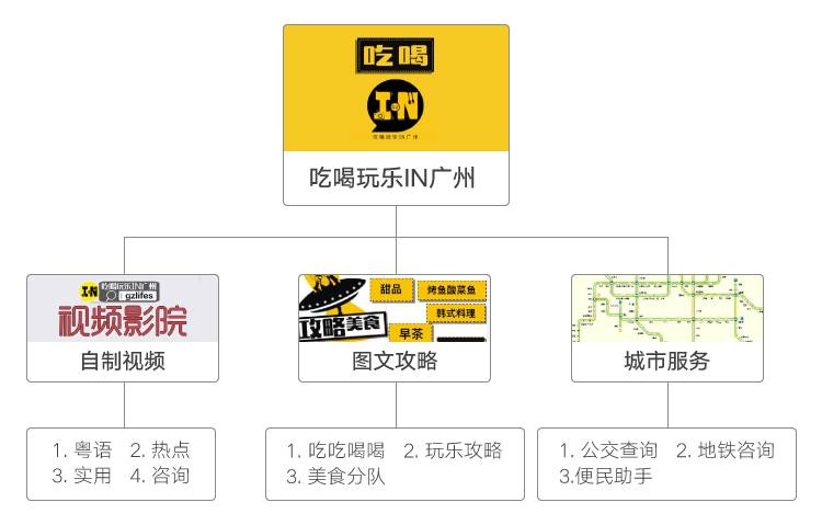 谢晓鹏:目前我们除了“吃喝玩IN广州”外还运营着其他账号,例如综合资讯类:“soho广州”,目前55万粉丝;品质生活类:“慢活广州”;还有校园,宠物,母婴,旅游类等。