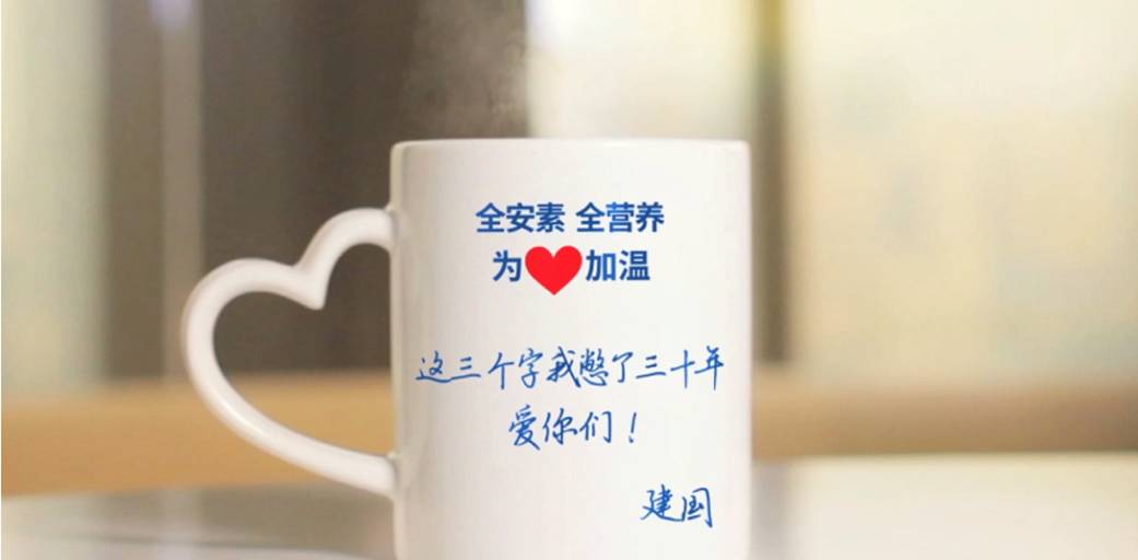 我们想了一个非常巧妙的主意,我们找到一个杯子,这个杯子可以变色,把热水加进去,图案就可以呈现出来。这也不是一个新技术,我们只是找到一个适合的载体,用较为恰当的方式表现这个主题。我们在微信上做了一个H5,这个H5可以有一段引导的片子,然后让你定制属于你给父母的“为爱加温杯”。客户本来准备了一万个杯子,一天内被秒光,于是又做了10万个杯子,一周之内全部卖光。