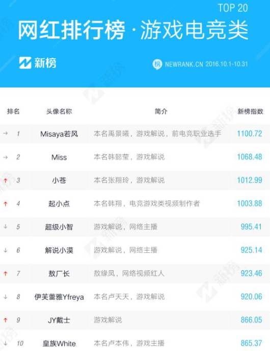 新榜每月会固定推出一份网红排行榜,在刚刚过去这期《张大奕强势回归,大胃王粉丝大涨 | 新榜10月网红排行榜》中,起小点本身就排在游戏电竞类第4位。