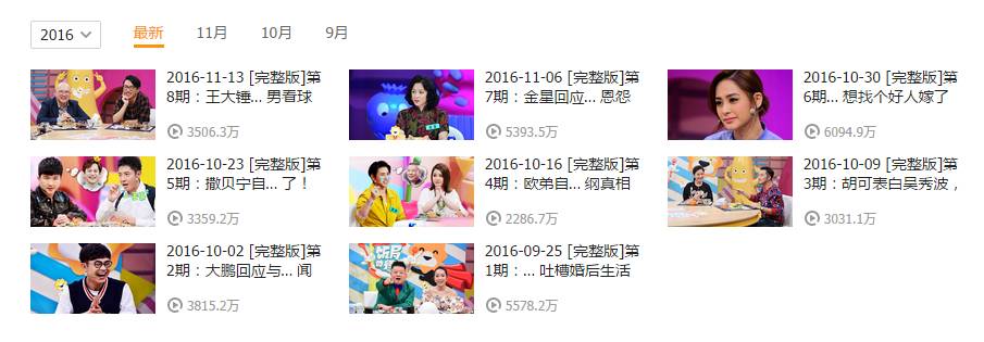 2016年9月25日,《饭局的诱惑》在腾讯视频播出,目前上线8期,截至目前的视频播放量3.2亿,微博话题阅读量2.8亿。10月5日,《拜拜啦肉肉》在优酷视频独家播出,上线7期,视频播放量2.6亿,微博话题阅读量2.2亿。