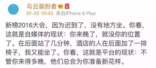 很荣幸,“2016新榜大会·内容创业者之春”在今年的1月22日占据了新媒体人一天的注意力。