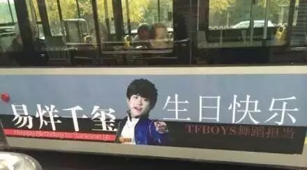 上海旅游双层巴士带着易烊千玺的生日广告绕淮海中路附近一圈,上海市区的小伙伴表示绝对看饱了易烊千玺的脸。长沙50辆公交车携带广告发车,上车的乘客绝对能一眼注意到。全国17个城市40块院线LED大屏、2200+百度糯米取票机播放相应广告,想起来也是很壮观的。