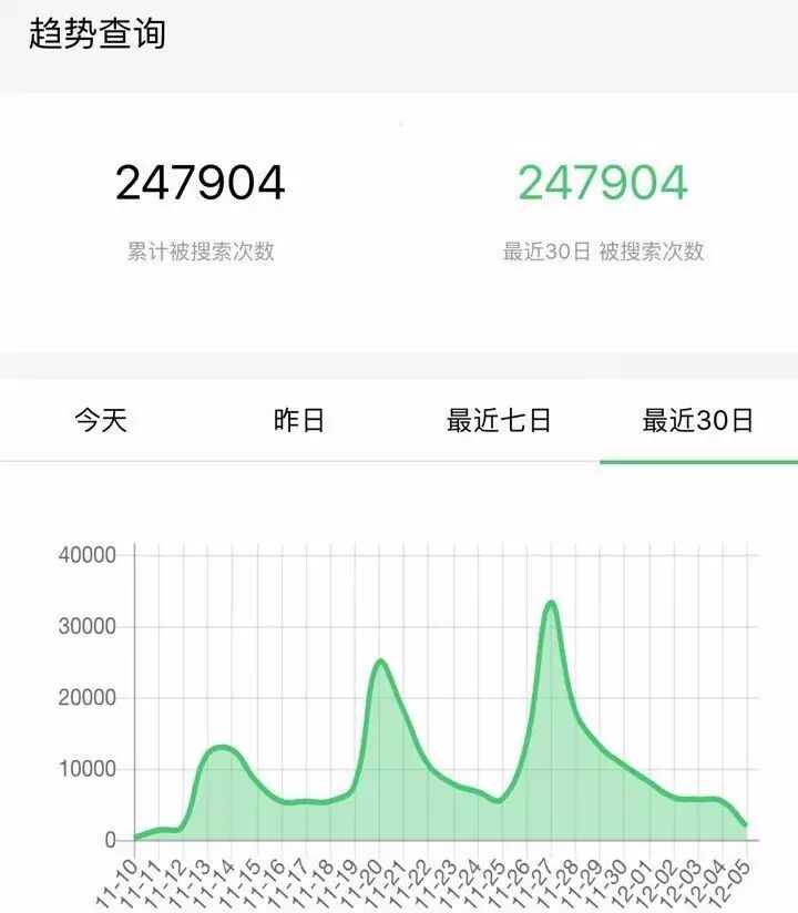 我们以过去一个月累计被搜索了24.7万次的公众号“起小点见”为例,在这个挖掘电竞主播日常绯闻和趣事的公众号后台,可以清楚看到大家的搜索数据。