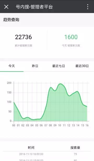 想知道每天有多少人来关顾过自己的“号内搜”吗?