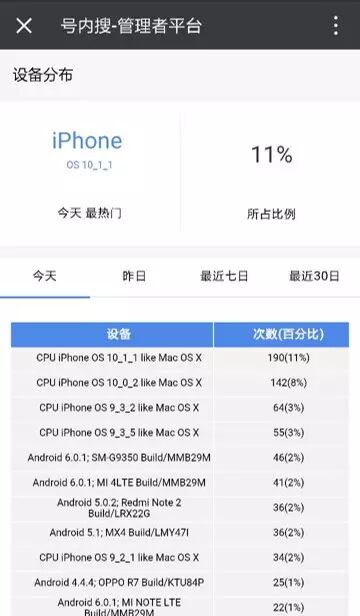 设备分布:展示了搜索终端的设备分布情况,如下图所示: