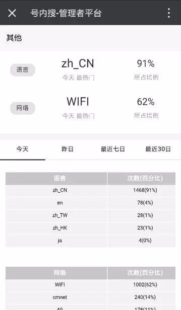 其他:其他详情页则呈现了语言及网络的分布情况。
