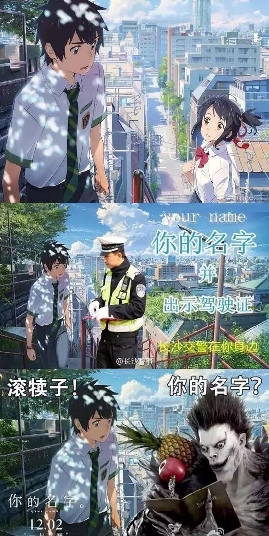 这两天的朋友圈似乎被网友的脑洞搞得异常热闹。你一定看到过《你的名字。》被玩坏的海报,例如海报名字恶搞、“查证系列”等,他们都长下面这个样子: