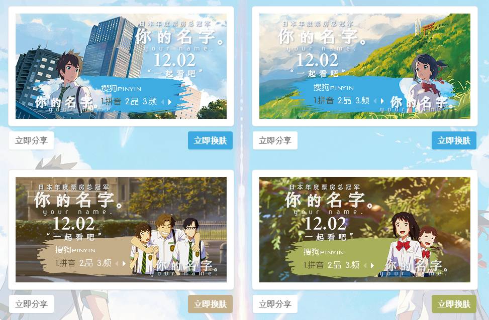 2. 搜狗输入法:推出《你的名字。》个性皮肤及专题页