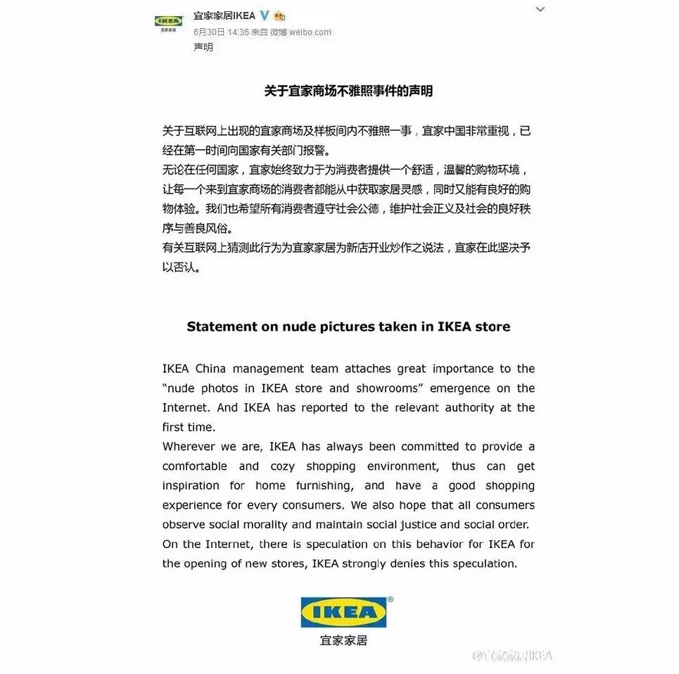 宜家因这种事情上头条的情况早有先例,例如网友蹭睡被社会媒体报道,还有今年6月的宜家不雅照事件,宜家几乎是一边喊着“我们没有炒作”,一边又因为奇葩事件爆新闻。