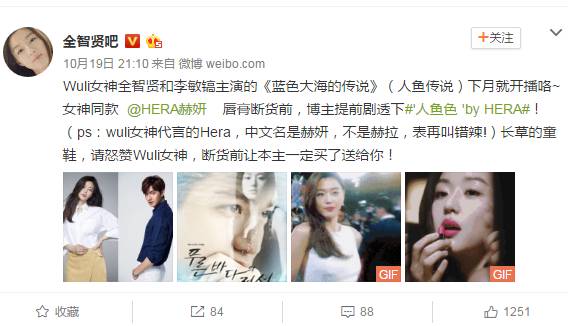 但只要人鱼妆火了,全智贤代言的HERA赫妍就自然地被越来越多的人提及,曝光量也越来越高。