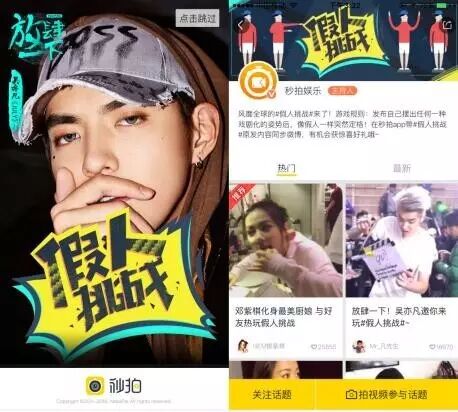 从活动创意来说,“机器人挑战”有点像1个月前风靡一时的“假人挑战”。当时,秒拍联合新浪微博掀起全民“假人挑战”热潮,吴亦凡、梁朝伟、唐嫣、邓紫棋、吉克隽逸、魏晨、俞灏明、欧阳娜娜等几十位艺人纷纷参与。参与挑战的艺人无不脑洞大开,定格戏剧化的精彩一幕。