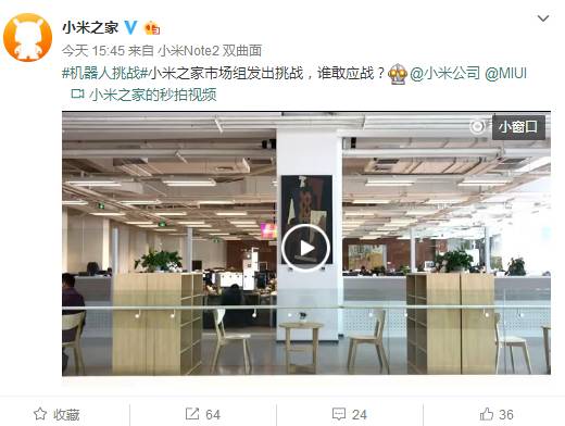 广告视频之外,小米设计了一个“机器人挑战”的活动,这个活动目前仍旧没有很大的声浪。