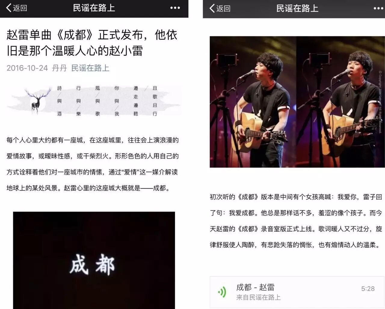 公众号“民谣在路上”称不上大号,但一直保持良好的活跃度和原创输出,也会做歌曲发布