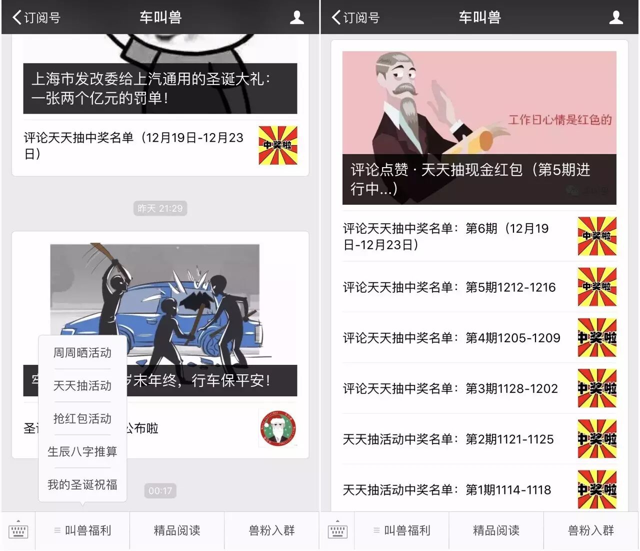 为了留住这批地推而来的用户,触发他们的阅读欲望,“车叫兽”在每周的内容中都设置了“活动抽奖”的板块,通过低成本的小游戏增强互动和活跃度。