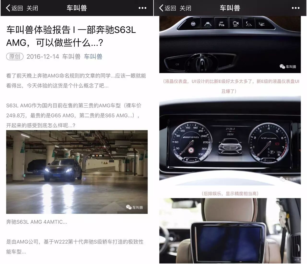 车叫兽:我们希望能不单单为用户提供资讯,微信公众号是我们引流的工具,我们希望通过用户比较关注的内容,把这部分处在汽车消费升级的用户聚拢过来,然后通过社群的手段运营这些用户,让这些用户能够自发地产生内容。而这些内容又会反哺我们的公众号,为用户提供更多真实用车体验的内容。