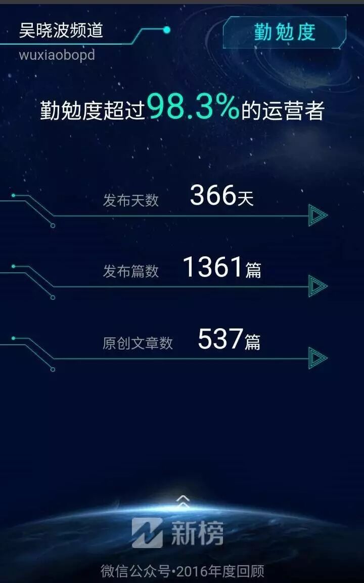 在这场“新锐中产阶级的崛起和消费升级”过程中,围绕“吴晓波频道”衍生和打造出的内容创作矩阵,可以说都是在做一件事,那就是掌握引导中产潮流的主动权——“过去这两年多所做的,就是形成这样一个舆论场。”