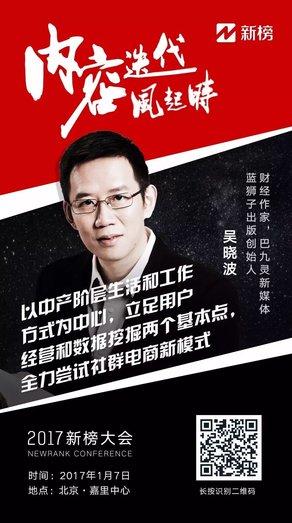 1月7日新榜大会上,吴晓波老师还将有独家分享。