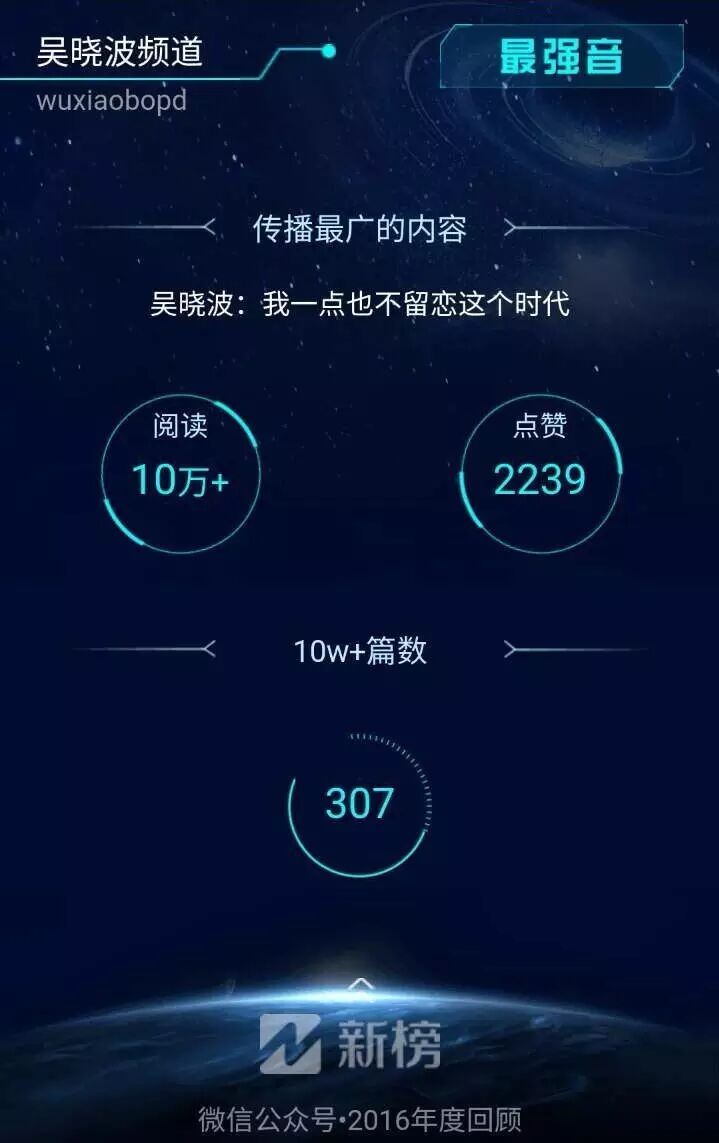 2016年12月30日晚,在喜马拉雅大观舞台上《遇见2016》的演讲中,吴晓波在“社群经济大行其道”章节,讲述了“网红经济”和“知识付费”。