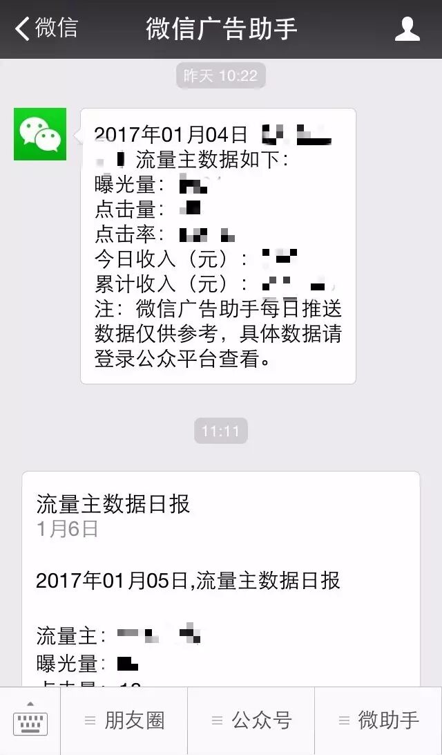 新榜讯 1月6日,有用户向榜妹爆料,“微信广告助手”的流量主通知改版了,由之前的数据报告改为日报的形式。