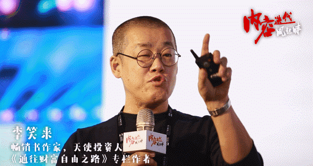 在点“识”成金的板块中,畅销书作家、天使投资人、《通往财富自由之路》专栏作者李笑来上台做了精彩分享。比如关于社群,他这样说:“如果你想做社群…记住不能被你的脑残粉绑架了,比如你妈妈,你干啥她都说好。”