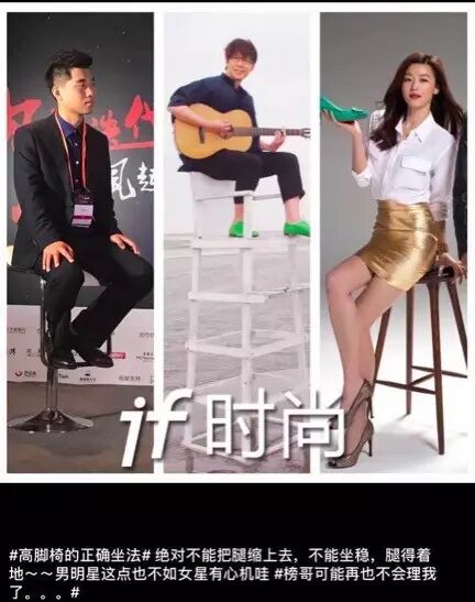 在场外忙着采访嘉宾的榜哥被时尚自媒体抓住了错误的坐姿: