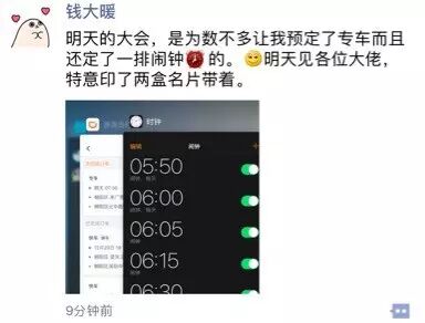 为了准时到场见到各位大佬,有人早上设了N多个闹钟。