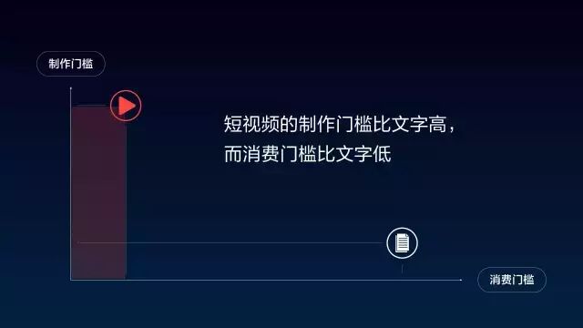 对创作者而言,视频是一种优于文字的体裁:视频的制作门槛和成本比文字高,而消费门槛和成本比文字低,这两点对于创作者来说都是好事。