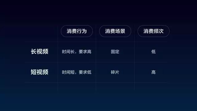 可以看出,短视频不等于短的视频,那么,它正在替代什么呢?以今日头条的数据为例,2016年,用户阅读每条图文的平均时长是1.16分钟,观看每条短视频的平均时长是1.62分钟。比起动辄40分钟以上的长视频,用户消费短视频的行为显然与图文更接近。