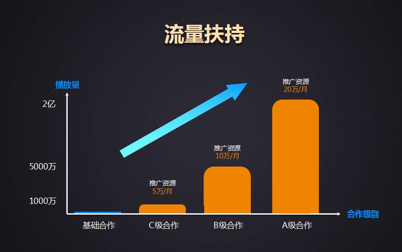 第一:成长启动创业者加入秒拍创作者平台,我们根据播放量的增速,来决定提供资源的多少,以及是否还继续提供。我们的门槛有1000万/月,2000万/月,5000万/月,2亿/月四个级别。我们会提供初始的支持,但希望在短期内看到高速成长,如果迟迟达不到下个门槛,或者流量还有下跌,那将有可能彻底失去这种起步支持。甚至,我们还将在一些城市开通移动视频创作基地,供短视频内容创业者使用,我们已经在上海开通了短视频创作基地,欢迎大家去使用。