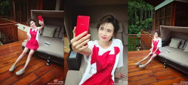 还有不少明星用红款的OPPO R9s(普通版)当街拍饰品,拍起来“大片”,想想这为OPPO的新手机免费打了多少广告。