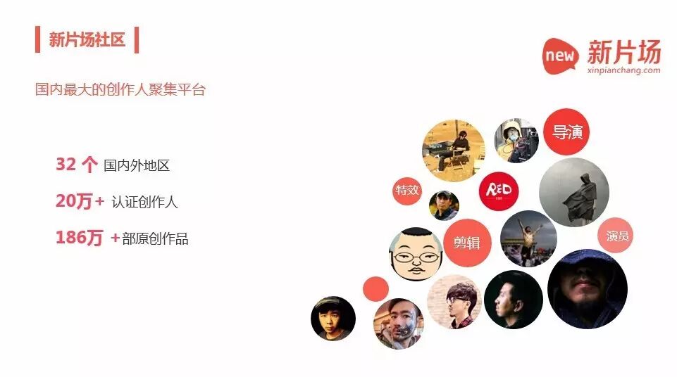 新片场首先是一家专注于做新媒体内容出品和发行的公司。我们最早是从社区起家的,做了新片场影视创作社区,这个社区聚集了大概20多万个认证的影视创作人。我们发现,社区平台上的创作人一步一步都成长起来了,有的人从拍短片开始,一步一步成长起来去拍院线电影。有的人从拍短片开始,一步一步地创办自己的内容平台,不断做大。