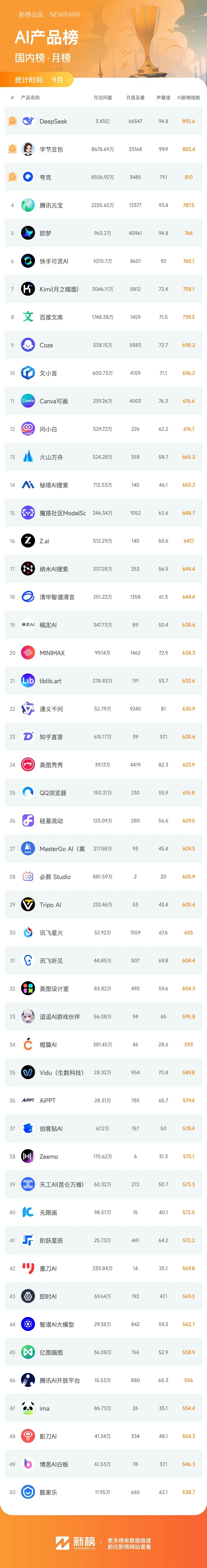 即梦月下载量突破1100万,总榜排名上升45位;智谱Z.ai月访问量增速近50% | AI产品月榜