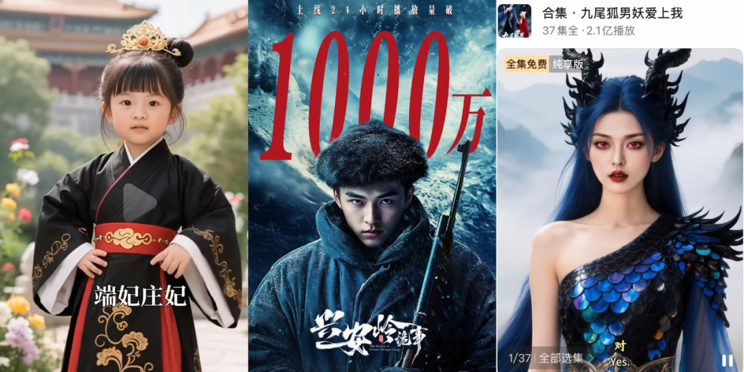再以此前的AI奇幻甜宠短剧《九尾狐男妖爱上我》为例,上线不到两个月,累计播放量超2.1亿。国内首部付费AI短剧《兴安岭诡事》,仅在抖音的平台内收入就超过了30万。