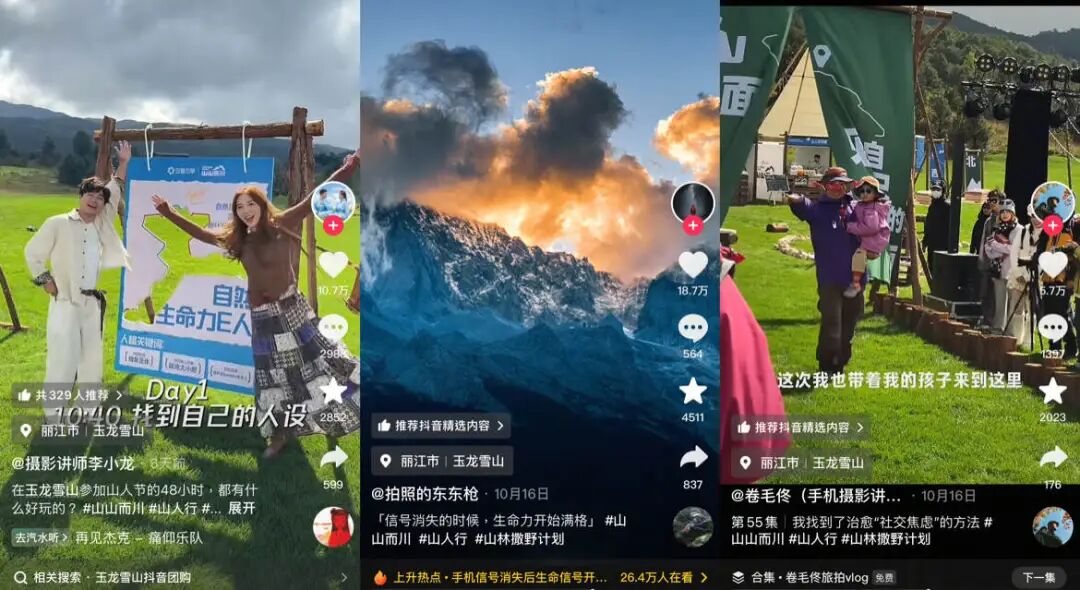 基于这一趋势,巨量引擎将这场户外营销栏目从短视频办到了山野间。线上短视频和达人种草实现情绪触发,线下“山人节”等活动沉浸与转化。新榜旗下抖音数据统计工具新抖显示,近90天内,#山山而川 话题下相关内容浏览量已超1.2亿,活动形式从线上短视频延伸至线下。