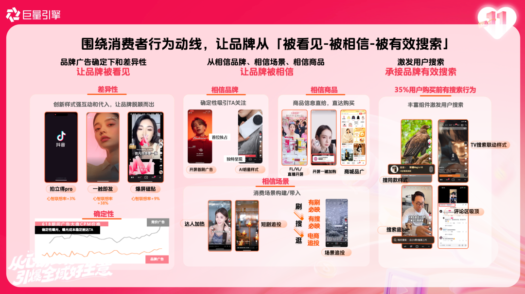 品牌不能只被看见,而是通过信息流、开机位、直播间等多场景布局,用极具交互性的创新样式,让品牌广告在用户面前“活”起来。