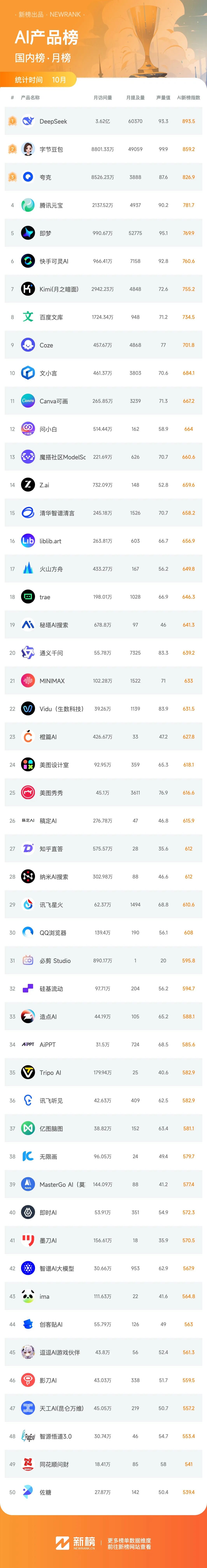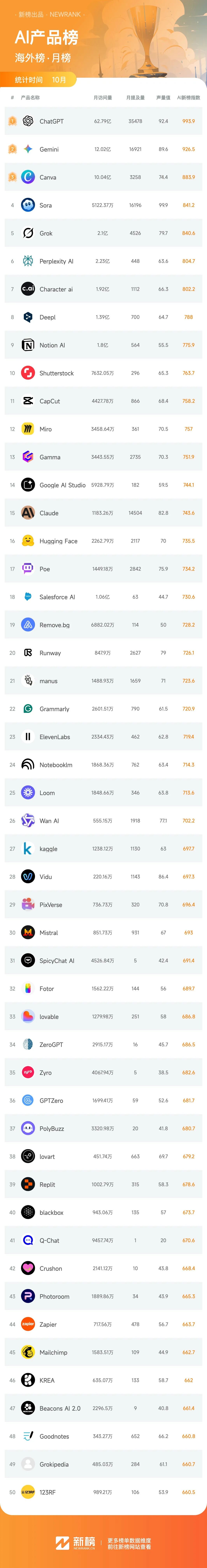 Sora月访问量超5000万,位列总榜第7;AI编程工具Trae跻身国内榜前20 | AI产品月榜