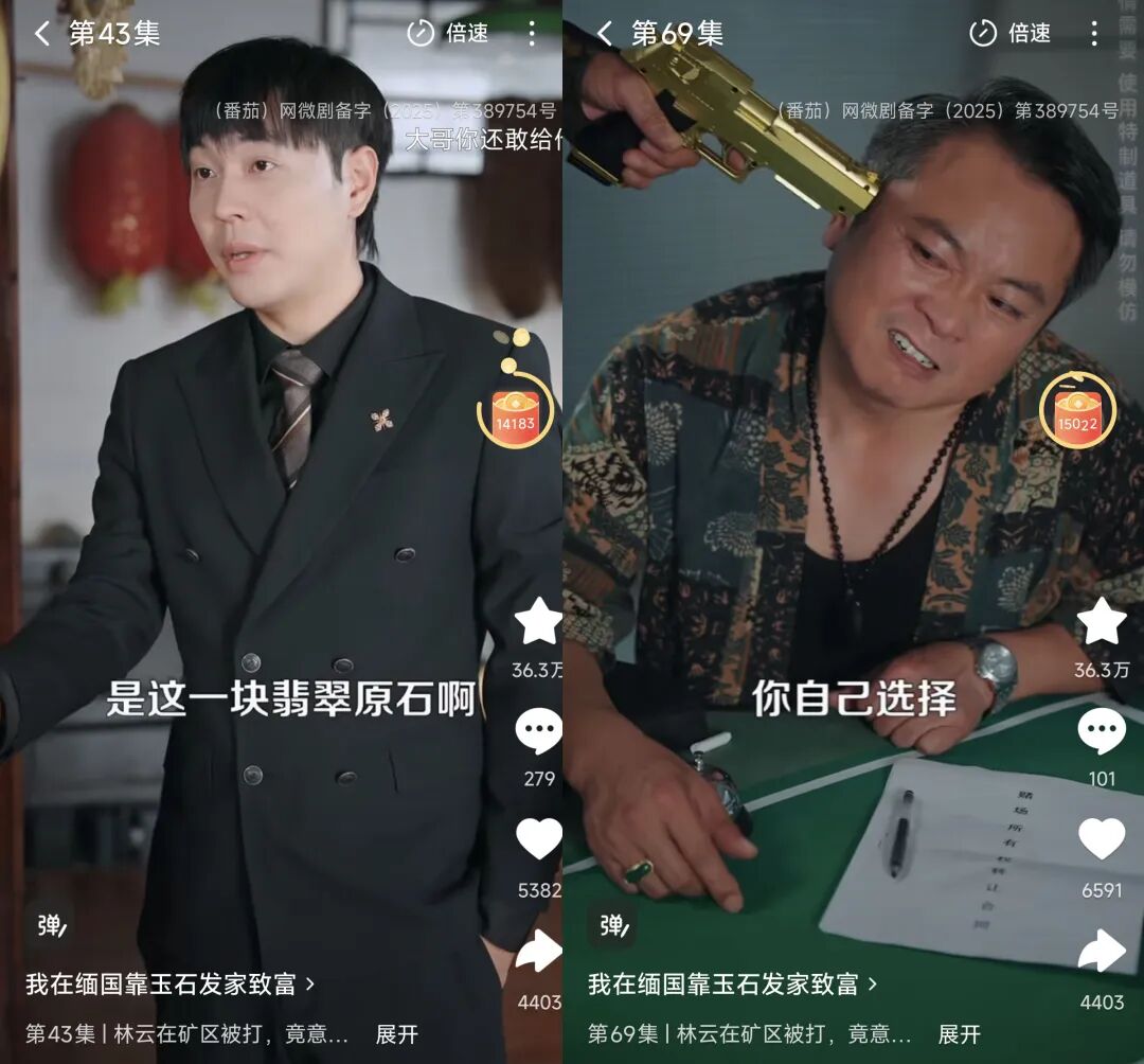 金手指是网文中的一个常见概念,指的是主角所拥有的、超越常理的特殊优势或作弊能力。本期登上短剧热度周榜的《我在缅国靠玉石发家致富》,就讲述了流落缅国的主角林云,靠着异能金手指大杀四方,最终财富、势力双丰收,走上人生巅峰的故事。