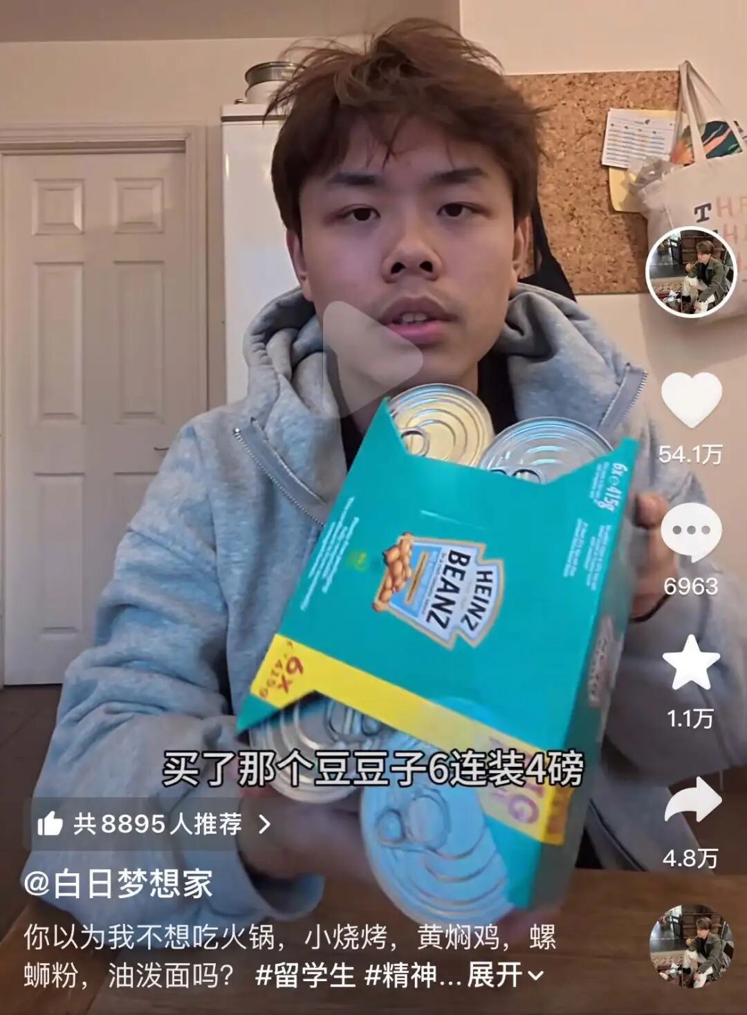 “白日梦想家”走红后,有网友提出质疑“他是不是在刻意卖惨”,在网友看来,能出国留学的家庭经济条件已经不算差,似乎没有必要节俭到吃过期食品的程度。