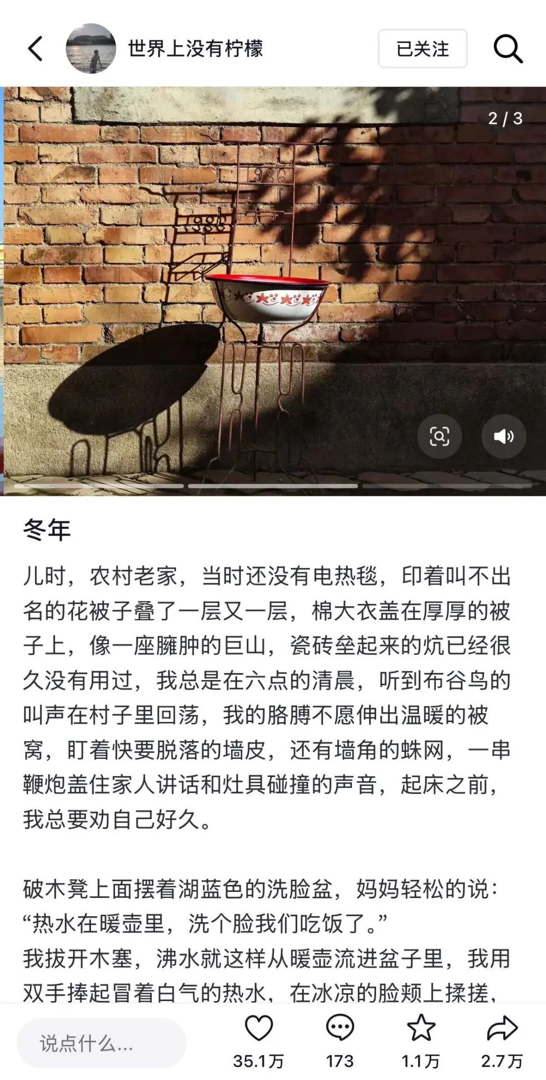 正所谓“苦难是文学的温床”,别看他在大号总是生无可恋的样子,在小号“世界上没有柠檬”上却是另一副面孔——孤独敏感的文艺青年。