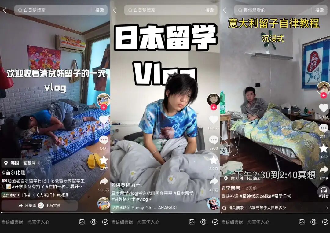 看留子们“活人微死”的vlog,已经成为这届网友的“新乐子”。