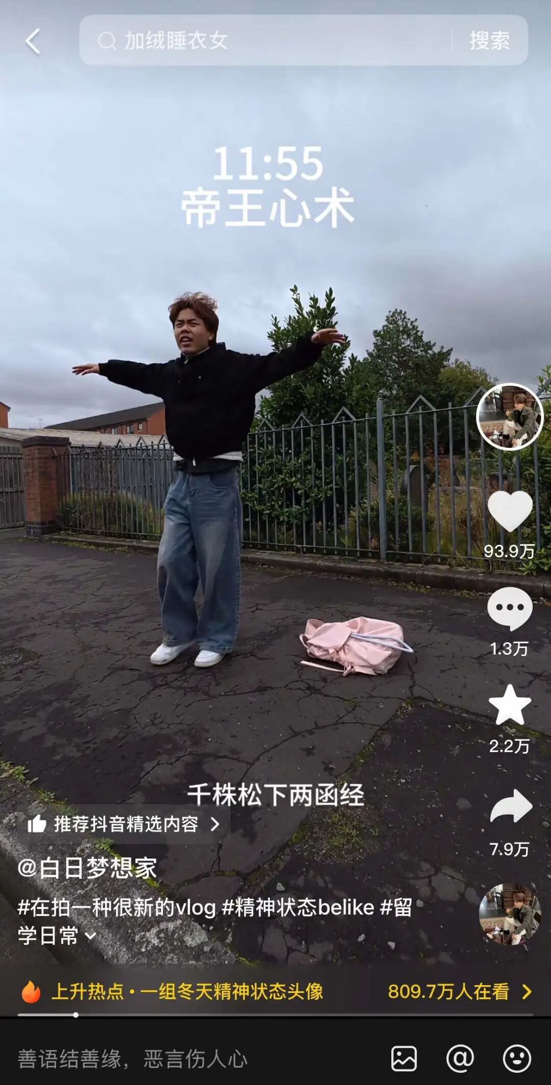 时常有网友在他的评论区调侃:“‘白日梦想家’的视频自带一种魔力,虽然什么都没干,但看完后确会有一种很累的感觉。”