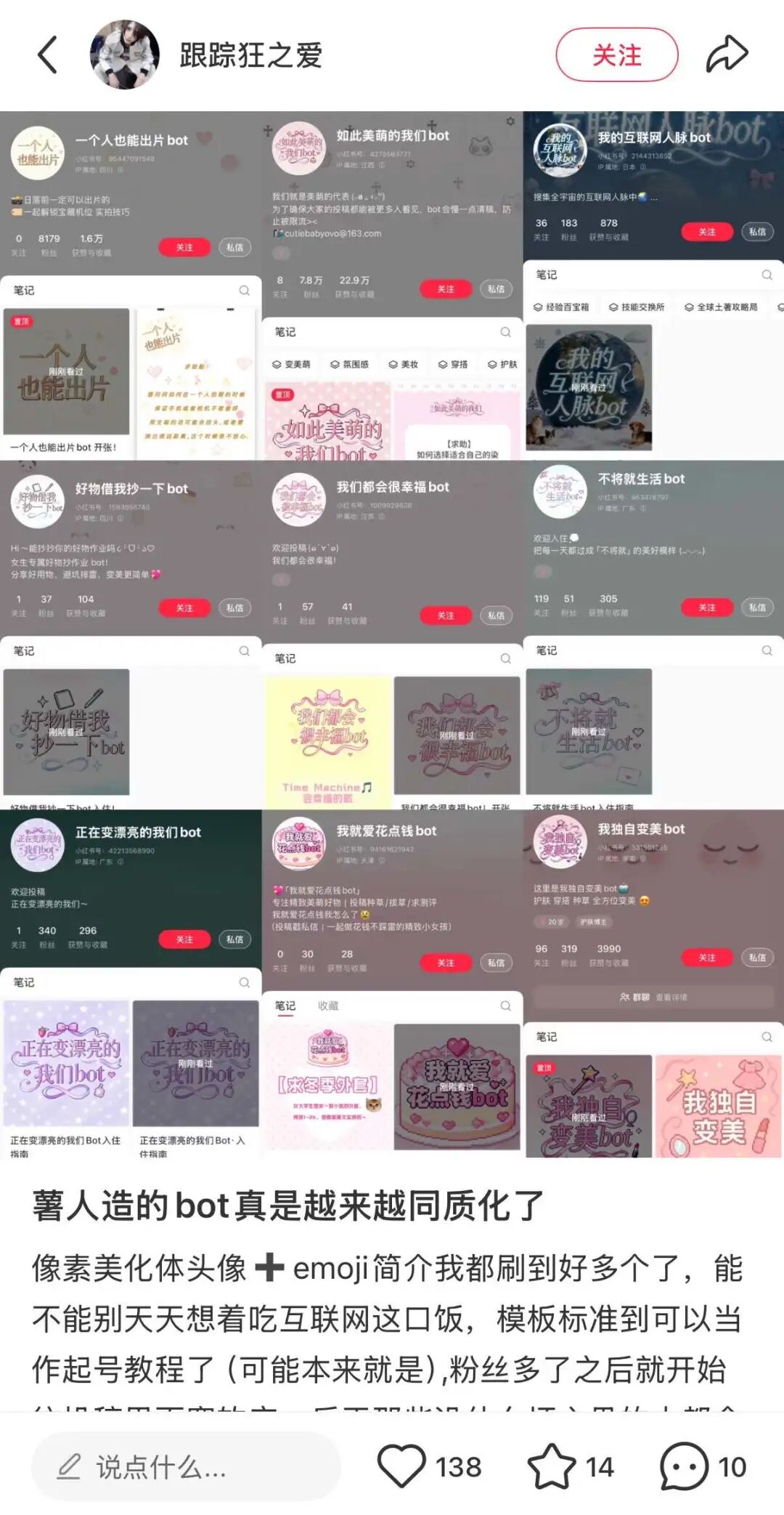 零门槛、起号快,既给bot账号带来红利,却也导致同质化现象的出现。
