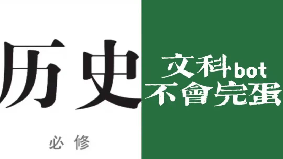 “文科不会完蛋bot”一改热门的像素风,它的头像是白底黑字的“历史”二字,每篇笔记的封面图都是一张印有“文科不会完蛋bot”字样的绿色图片。