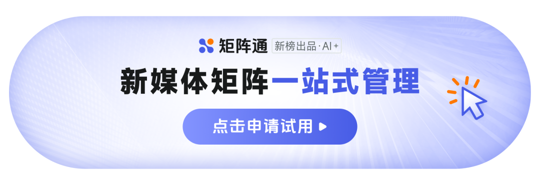 如果您也正在为多账号管理、数据分散、资产留存等问题困扰,欢迎点击下方按钮免费体验新榜矩阵通,为您的矩阵运营真正实现降本、增效、提质。