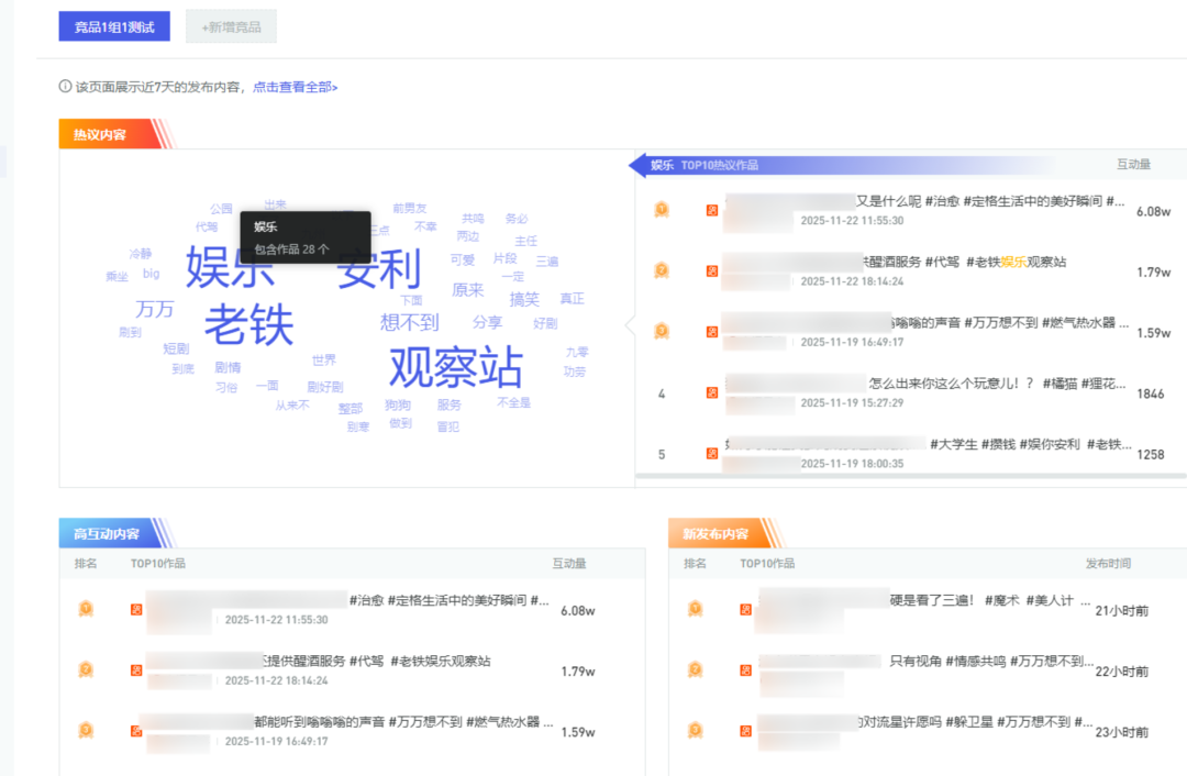 同时,该广电集团还利用矩阵通“竞对”板块及时追踪同行业动态,添加外部中央频道、地方优质频道等50+行业标杆账号,监测其热门内容,持续关注行业风向,为自身运营策略调整提供可靠依据。