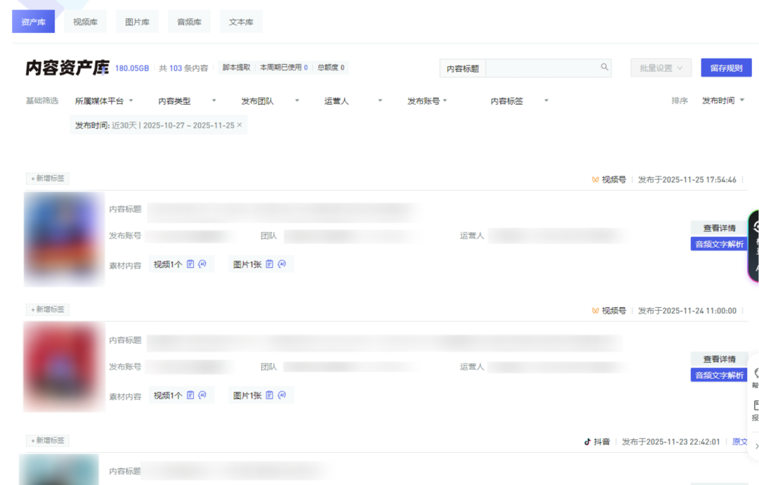 然而,随着账号规模的扩大,一系列运营与管理难题逐渐凸显:各账号分散在不同团队手中,难以统一管理与数据统筹;内容发布仍依赖线下人工沟通,审核流程繁琐、风险管控滞后;内部内容资产缺乏系统化留存机制,素材复用率低,版权管理存在隐患。